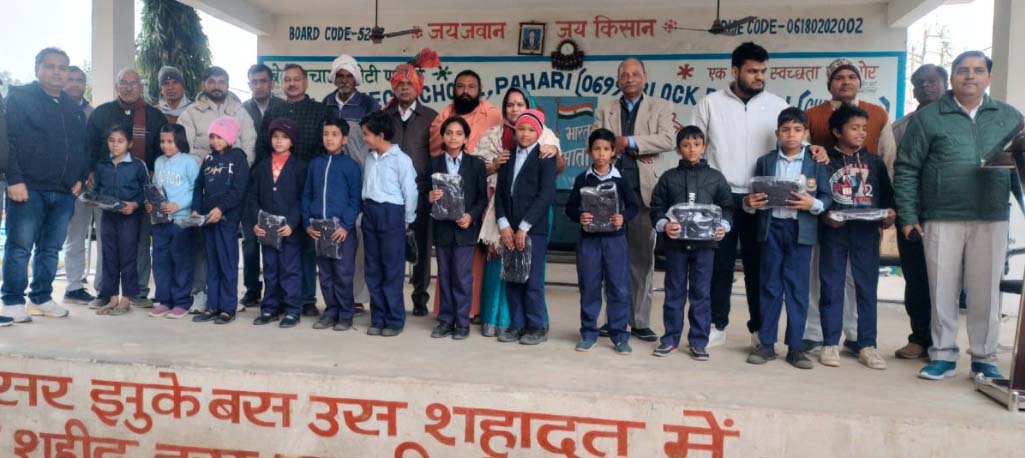 पहाड़ी (पटौदी) : गुडग़ांव विकास मंच व ब्राह्मण वेलफेयर एसोसिएशन द्वारा पटौदी क्षेत्र के गांव पहाड़ी में योग्य बच्चों को सर्दी से बचने के लिए स्वेटर वितरित किए गए। स्वेटर वितरण कार्यक्रम में हेड़ाहेड़ी गौशाला के संचालक महंत स्वामी राजगिरी जी महाराज, हरियाणा के प्रथम मुख्यमंत्री पंडित भगवत दयाल शर्मा जी की पुत्रवधू आशा शर्मा, कल्याण सिंह शर्मा पूर्व आईआरएस, अजय शर्मा अध्यक्ष ब्राह्मण वेलफेयर एसोसिएशन, दीपक कटारिया एडवोकेट, गुरचरण सिंह पूर्व रेल अधिकारी, एस एस यादव एडवोकेट पूर्व रेल अधिकारी, समाजसेवी गौरव गुप्ता मौजूद थे। इस मौके पर क्षेत्र के जाने-माने शिक्षाविद रामनिवास शर्मा जी के निधन पर दो मिनट का शोक व्यक्त किया गया। इस अवसर पर राजकीय वरिष्ठ माध्यमिक विद्यालय पहाड़ी के कार्यवाहक प्रधानाचार्य सुमित कटारिया, सरपंच लीलू राम, स्कूल कमेटी अध्यक्ष अनिल कुमार, प्रवीण शर्मा व कमांडो लाल सिंह बागड़ी द्वारा टीम का भव्य स्वागत किया गया।