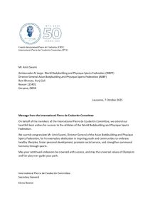 इंटरनेशनल पीयरे डे कोबरटिन कमेटी (आई.पी.सी.सी) ने अमित स्वामी को भेजा बधाई एवं प्रशंसा पत्र