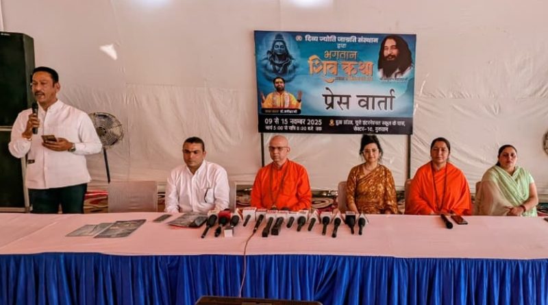 गुरुग्राम : दिव्य ज्योति जाग्रति संस्थान गुरुग्राम सेक्टर-10 के हुडा ग्राउंड में सात दिवसीय शिव कथा का आयोजन कर रहा है। कथा आशुतोष महाराज जी के दिव्य ज्योति जाग्रति संस्थान द्वारा 9 से 15 नवंबर तक होगी। कथा प्रारंभ होने से एक दिन पूर्व 8 नवंबर को हुडा ग्राउंड से कलश यात्रा निकाली जाएगी। यात्रा सेक्टर-10ए कम्युनिटी सेंटर से प्रारंभ होकर शहर के विभिन्न वार्डों और मोहल्लों से होते हुए वापस हुडा ग्राउंड पहुंचेगी। कलश यात्रा बैंडबाजों के साथ धूमधाम से निकाली जाएगी। इसमें 1100 से अधिक सौभाग्यवती महिलाए सहभागिता करेंगी और पूरे शहर में गो संरक्षण का संदेश देंगी।