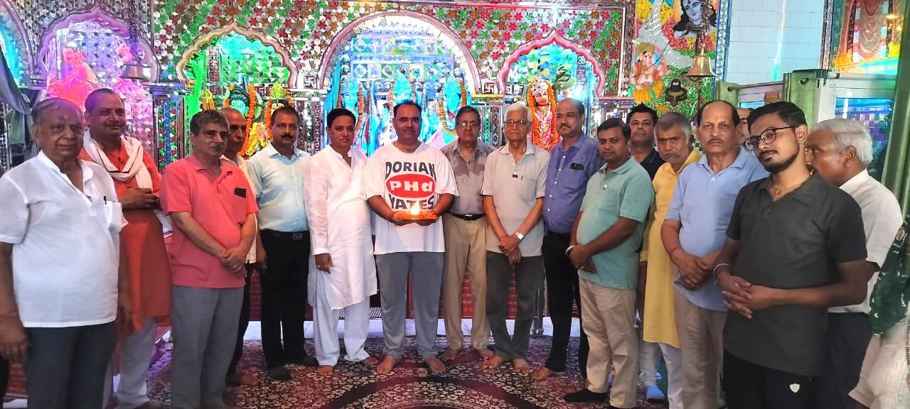 रेवाड़ी : नगर के धोलिया कुआं स्थित नगर के प्राचीन सिद्धेश्वर मंदिर के स्थापना दिवस के अवसर पर विश्व कल्याण तथा विश्व शांति के लिए महाआरती का आयोजन किया गया। इस अवसर पर मुख्य यज्ञमान के रुप में यंगमैन्स एसोसियेशन आफ इंडिया के राष्ट्रीय अध्यक्ष तथा एशियन बाडी बिल्डिंग एवं फिसीक स्पोर्टस फैडरेशन के महानिदेशक अमित स्वामी उपस्थित हुए।
